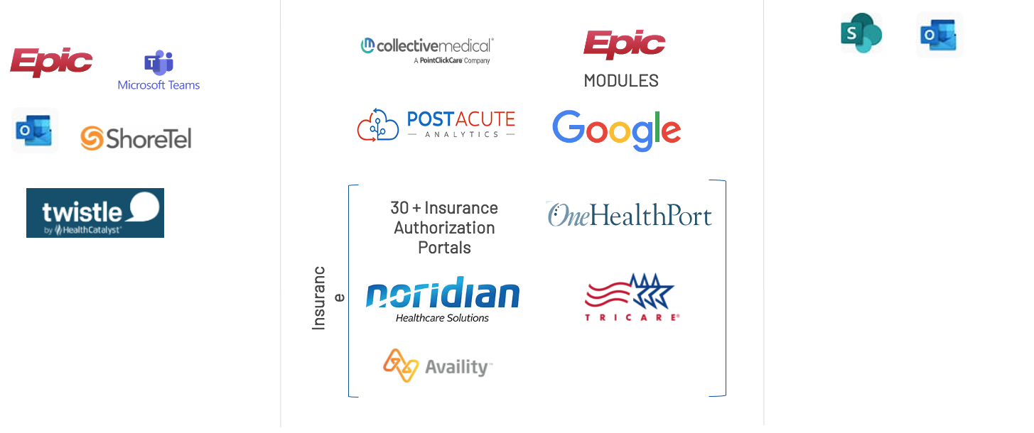 Caregivers use one tool to communicate with patients + internal / external care teams.